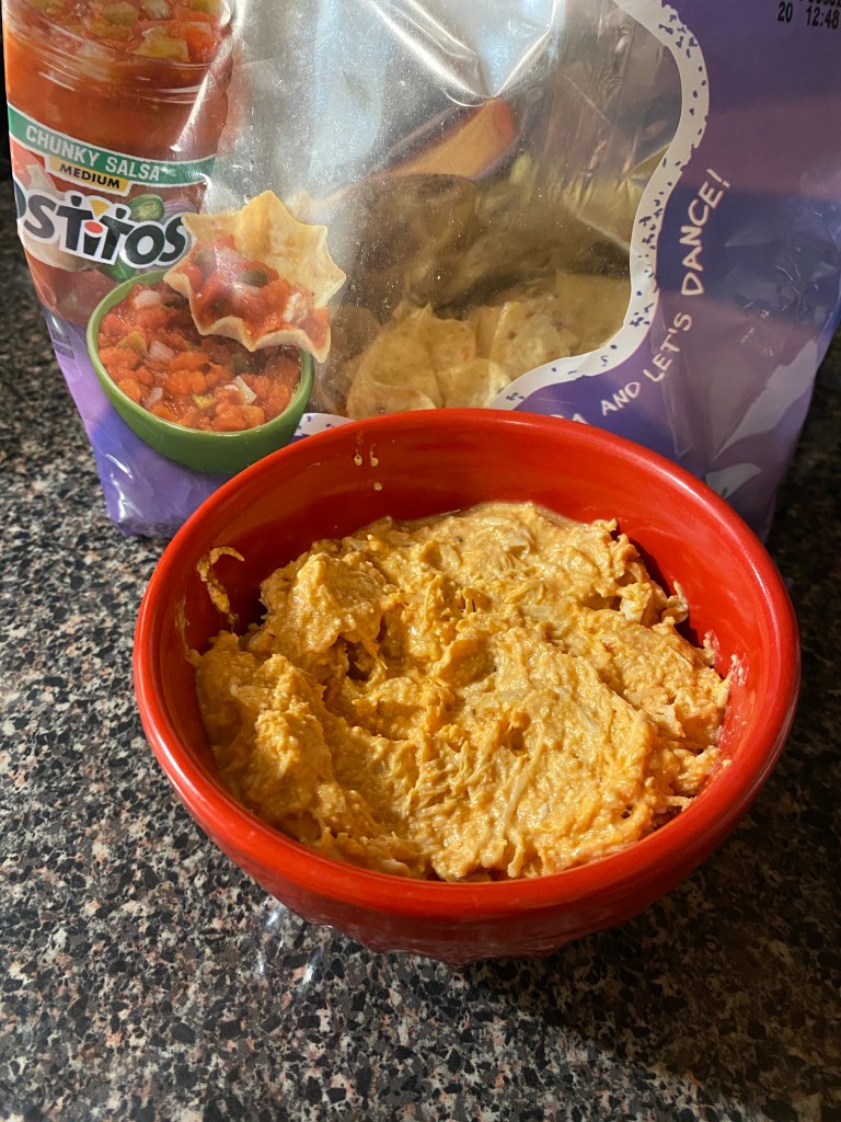 Buffalo Chicken Dip! It’s always highly requested by family and friends for all gatherings and so easy to make! In a crockpot: 8oz of cream cheese 1-2 pounds of skinless, boneless chicken 1/2 – 1 cup of franks hot sauce Salt, pepper, and garlic powder to taste Cool on low for 6 hours, shred the chicken and enjoy! ☺️