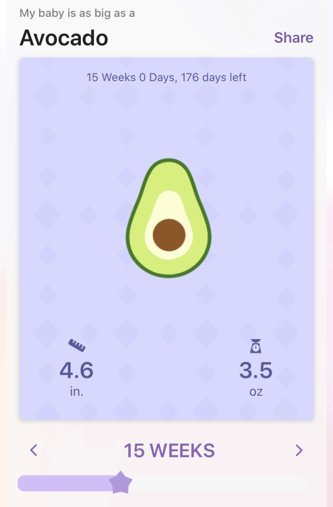15 weeks along and little babes is the size of an avocado 🥑so funny because I’ve been thinking the last few days how great some guacamole and avocado toast would be😂 Appetite and energy are up! . . . Monday we will hopefully know the gender. A popular question we’ve been getting lately is what are we hoping for and honestly we just want the baby to be healthy. Many people are hopeful for a boy because the boys are outnumbered. But boy or girl the baby will be so loved! I have noticed myself saying he a lot and I do correct myself and say he or she, some say it’s instinct. So we shall see!